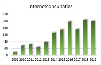 Het aantal internetconsultaties in de afgelopen 10 jaar (t/m 20 oktober 2019).