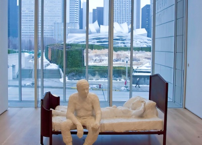 Prachtig dat ’the bed’ van Will Ryman. Ondertussen heb ik internet ondersteboven uitgeschud om te zoeken naar een plaatje van een, vond ik toen tenminste, een erg dramatisch sterk werk van Patrick Corillon genaamd: Oskar Serti Bless. Voorstellende een leeg (verlaten?) ziekenhuisbed waar je de status van de patient kunt lezen. Maar dat papier zit aan een heel kort touwtje zodat je plaats moet nemen op een stoel naast dat bed, als was je bezoek.