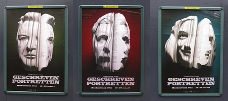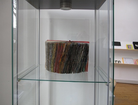 Geen uitgevers die zich bemoeien met transcripties en boekomslagen, zoals in de literatuur het geval is. Bury’s defintie kan tot verwarring leiden, want is een van boeken gemaakt object ook een kunstenaarsboek? Vier jaar geleden toonde de Boekenweek affiesjes met foto’s van boeksculpturen van Nicholas Galanin. Van duizenden bij elkaar geperste pagina’s maakte hij portretten van Nederlandse schrijvers. Zijn dit “op boeken lijkende voorwerpen” volgens Bury’s definitie?