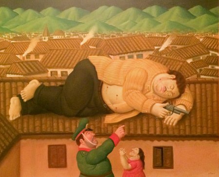 Onder de zo goed als echt lijkende tapijten die Antonio Santin schildert lijkt misdaad verborgen te zijn. De contouren van vermoorde mensen? Sporen van ‘crime scenes’?