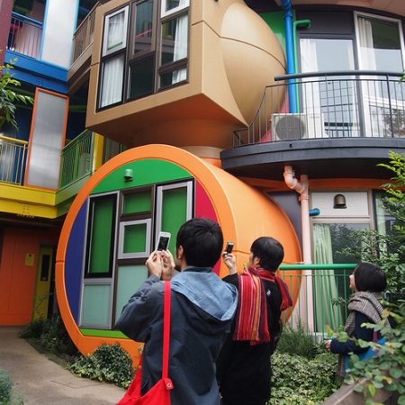 Kunstenaar Shusaku Arakawa en dichteres Madeline Gins, hebben de Reversible Destiny architectuur ontwikkeld. Woningen met veel kleur, scheve muren en vloeren, alles bedoeld om alle zintuigen te stimuleren, in de verwachting zo het leven te verlengen.