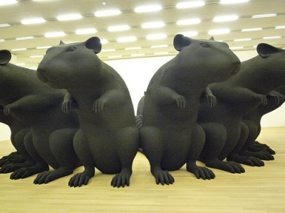 Vraag: De ratten in uw werk, drie meter hoog, zijn bijna monumentale uitbreidingen. Is macht een thema in dit werk met 16 ratten?