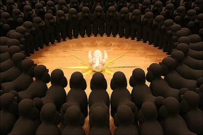 Maar mijn persoonlijke mening is toch dat het monochrome afbreuk doet aan de beelden. Het wordt bijna nog platter dan Koons. De beelden kunnen mooi zijn, goed zijn, de kleur leidt af. Vraagt om interpretatie die ik iig niet heb. Ik kan er niet zo veel mee.