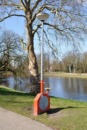 Van de in 2009 overleden kunstenaar Sander Rood staat in Alkmaar een lantaarnpaal waarbij je zelf de verlichting moet ‘aanfietsen’.