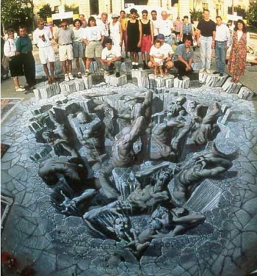 Kurt Wenner – 3D illusie, krijttekening, 2007.