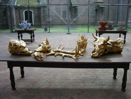 Guido Geelen – Gouden dierschedels met maisvaasbeeld, 2003.