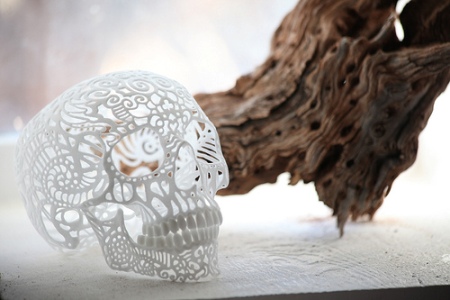 Joshua Harker maakt digitale ontwerpen van schedels, die met 3D printers ‘afgedrukt’ worden.