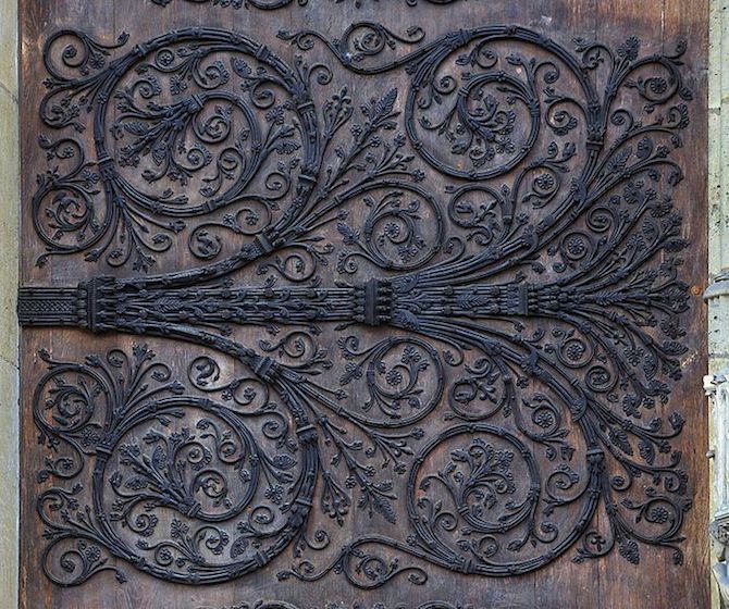 Een andere etiologische (oorzaakverklarende) sage, die soms met de bovenstaande wordt verward, is die van de smid Biscornet. Hij was één van de bekendste siersmeden van zijn tijd en hij kreeg in de 14e eeuw de opdracht de grote zijdeuren van de kerk te voorzien van ijzeren siersmeedwerk. Biscornet was erg trots op deze opdracht die hij zag als een definitieve erkenning van zijn vakmanschap en ging er vol tegen aan. Ook hij kreeg na verloop van tijd last van een burn out en twijfels of hij het werk wel aan kon, en begon assistentie te zoeken, maar niemand van zijn collega’s durfde de uitdaging aan. Biscornet kreeg het werk op tijd af, maar stierf na drie dagen. Toen niet veel later de deuren voor de eerste keer plechtig geopend zouden worden, bleken ze muurvast te zitten. Een priester kwam op het idee de deuren met wijwater te besprenkelen, en dat hielp. Als snel staken geruchten de kop op dat Biscornet bij de uitvoering van zijn werk geholpen was door de duivel en sommigen beweerden zelfs dat de duivel zelf de gedaante van de smid had aangenomen en dat het sierwerk dus gemaakt was door de duivel zelf. Het wijwater waarmee de deuren besprenkeld waren zou ook Biscornet uit de greep van de duivel verlost hebben. Niettemin zweeft zijn geest nog steeds door de kerk.
