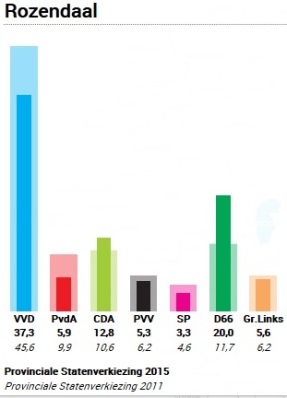 Elders werd gemeld dat in Rozendaal de VVD de grootste is geworden. Het klopt allemaal, maar dit klopt ook: 8,3% verlies.