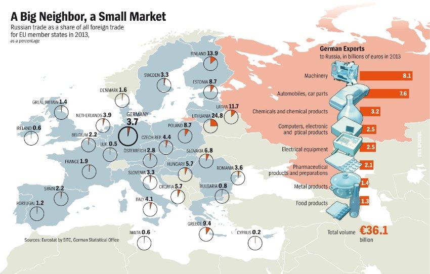 Kaart over handel Rusland & EU: Grote buur, kleine markt.