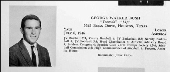 @24: George W. Bush ook, dat heldere licht. Die heeft zelfs nog in het stickball-committee gezeten bij Yale.